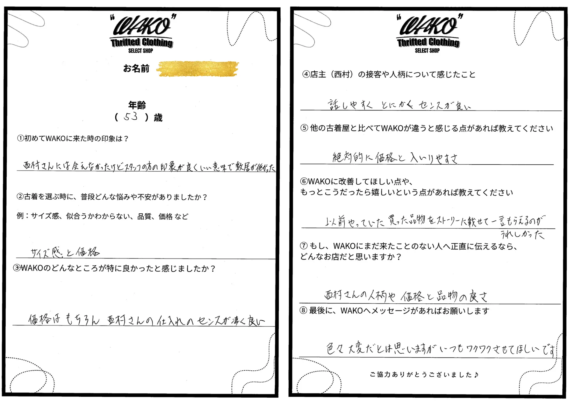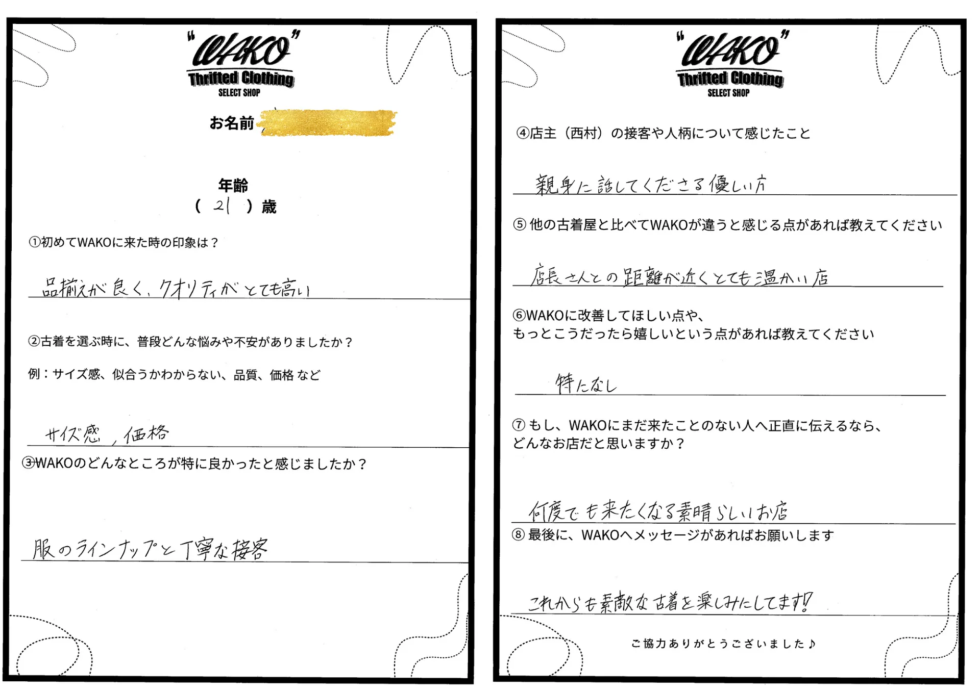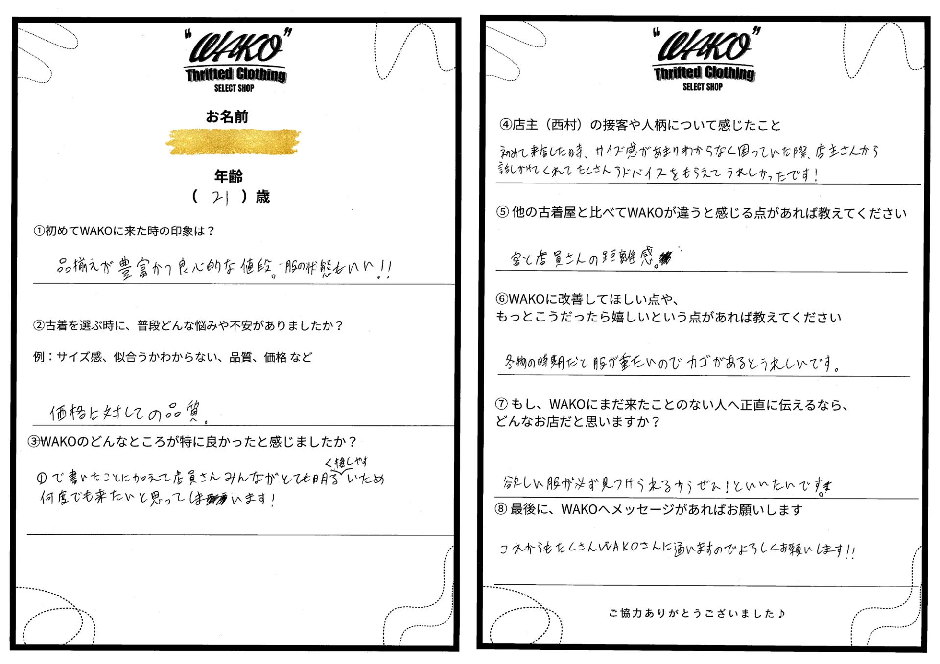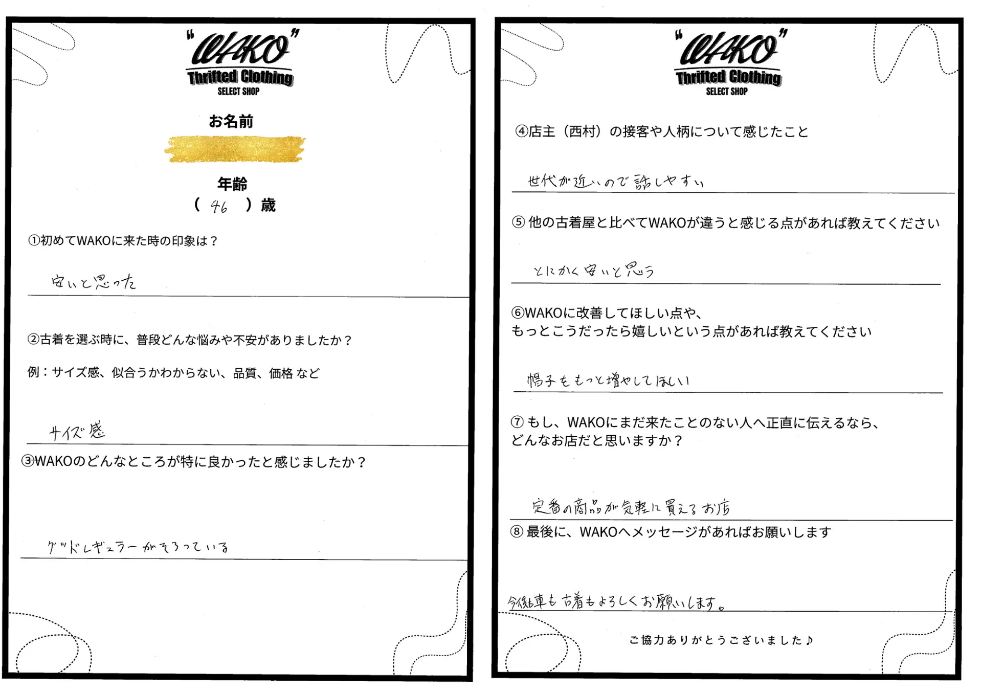 ⑤ 他の古着屋と比べてWAKOが違うと感じる点があれば教えてください